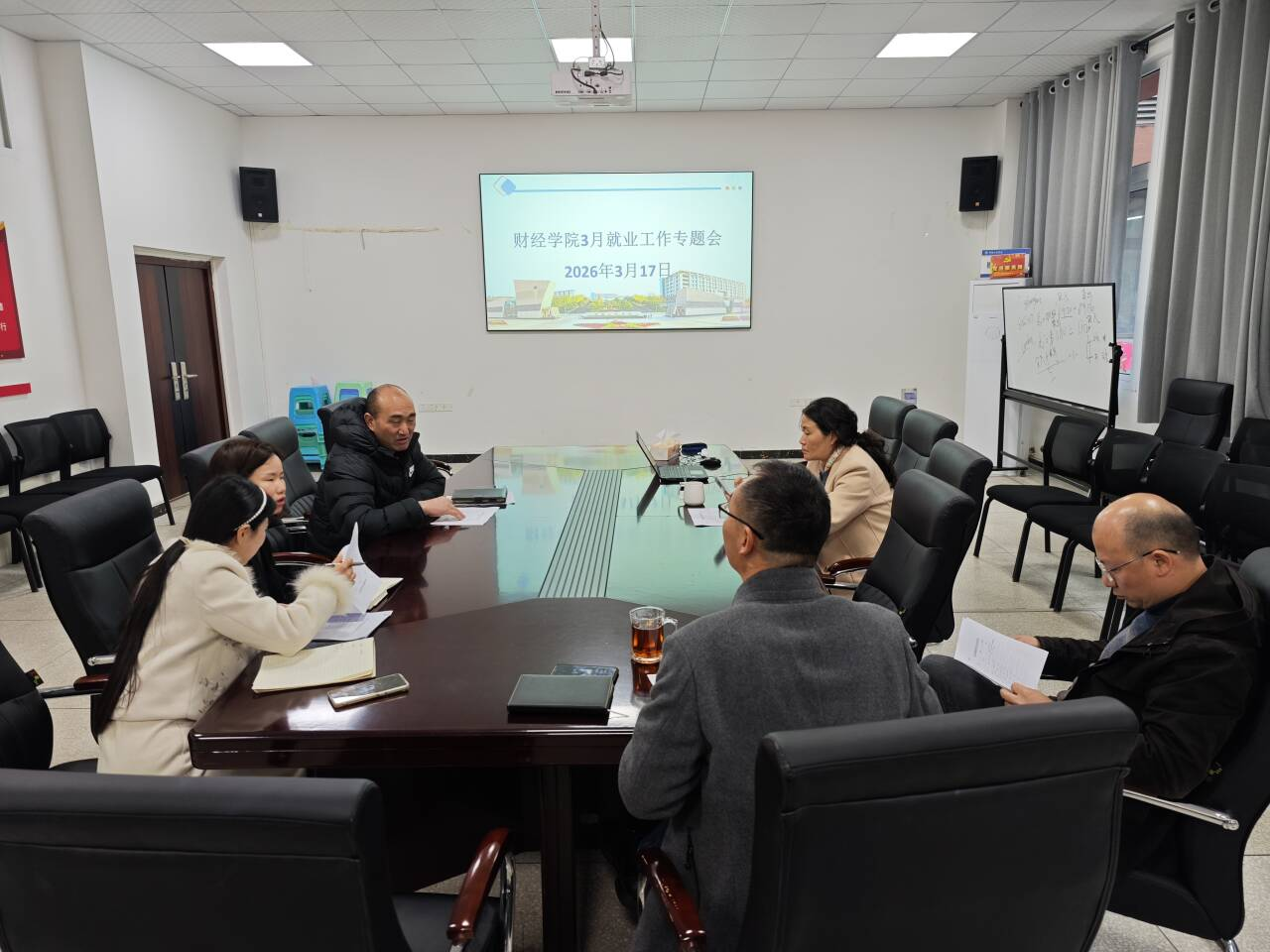 为深入落实学校毕业生就业工作部署,切实推进2026届毕业生就业工作提质增效,2026年3月17日16:00,财经学院领导班子成员与全体毕业班辅导员在博学楼3-112会议室,召开3月份毕业生就业工作专题会议。会议由党总支副书记何兴权主持。